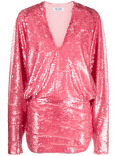 Adoptez l'énergie glamour et vibrante de The Attico avec notre éblouissante mini-robe à sequins à col en V. Cette pièce tendance présente un superbe motif à sequins rose corail, un décolleté en V flatteur, des manches longues avec poignets boutonnés, une taille ajustée et une fermeture à glissière dissimulée sur le côté. Participez à n'importe quel événement en toute confiance et faites une déclaration de mode audacieuse avec notre robe à ourlet incurvé accrocheuse.