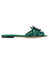 Sandales en dentelle ornées de cristaux vert émeraude Bianca de Dolce & Gabbana avec bout ouvert, modèle à enfiler, semelle intérieure griffée, semelle plate et application de fleurs sur le devant avec ornements en cristaux.