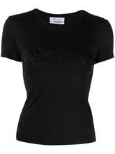 Rehaussez votre style avec ce t-shirt en coton orné du logo BLUMARINE. Le logo noir audacieux ajoute une touche de sophistication au design classique du col ras du cou. Fabriqué en coton doux, ce t-shirt présente des manches courtes et un ourlet droit pour un confort ultime. Parfait pour toutes les occasions, ce t-shirt est un ajout indispensable à votre garde-robe.