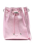 Ce mini sac seau rose est doté d'un cuir métallisé avec une bandoulière réglable et amovible, ainsi que d'un logo gravé sur le devant. Le compartiment principal est doté d'une plaque de logo interne et d'une doublure intégrale, et le dessus est doté d'une fermeture à cordon. Un sac anti-poussière de protection est inclus avec cette pièce.